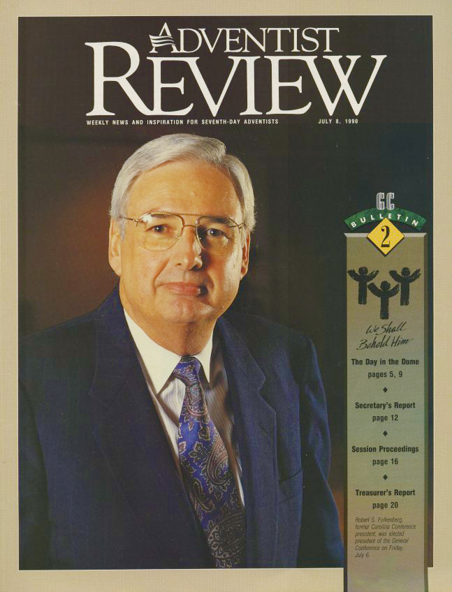 - La tapa de la Adventist Review, el 8 de julio de 1990, cuando fue elegido presidente de la Asociación General.